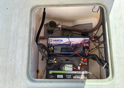 Engine: Comes with an 80L fuel tank, exhaust hose (replaced 2024), muffler and s/s clamps. Has additional inline filter/water separator. Has an antivibration coupling to prop shaft. Twin 12V batteries and associated master switches.