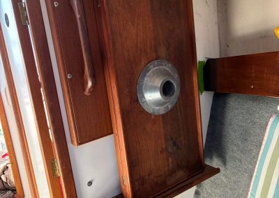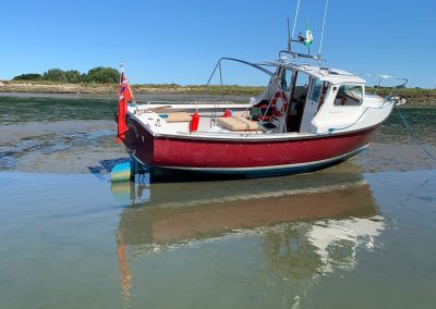 The boat has been serviced annually by the owner. This includes changing of the engine and gearbox oil. The primary fuel filter and separator combined have been changed every four year, secondary fuel filter every year. Both were changed in 2025. The impeller was also replaced this year. The cutlass bearing was replaced in 2024. Other recent work includes fitting of brand new fibreglass bilge keels this year.