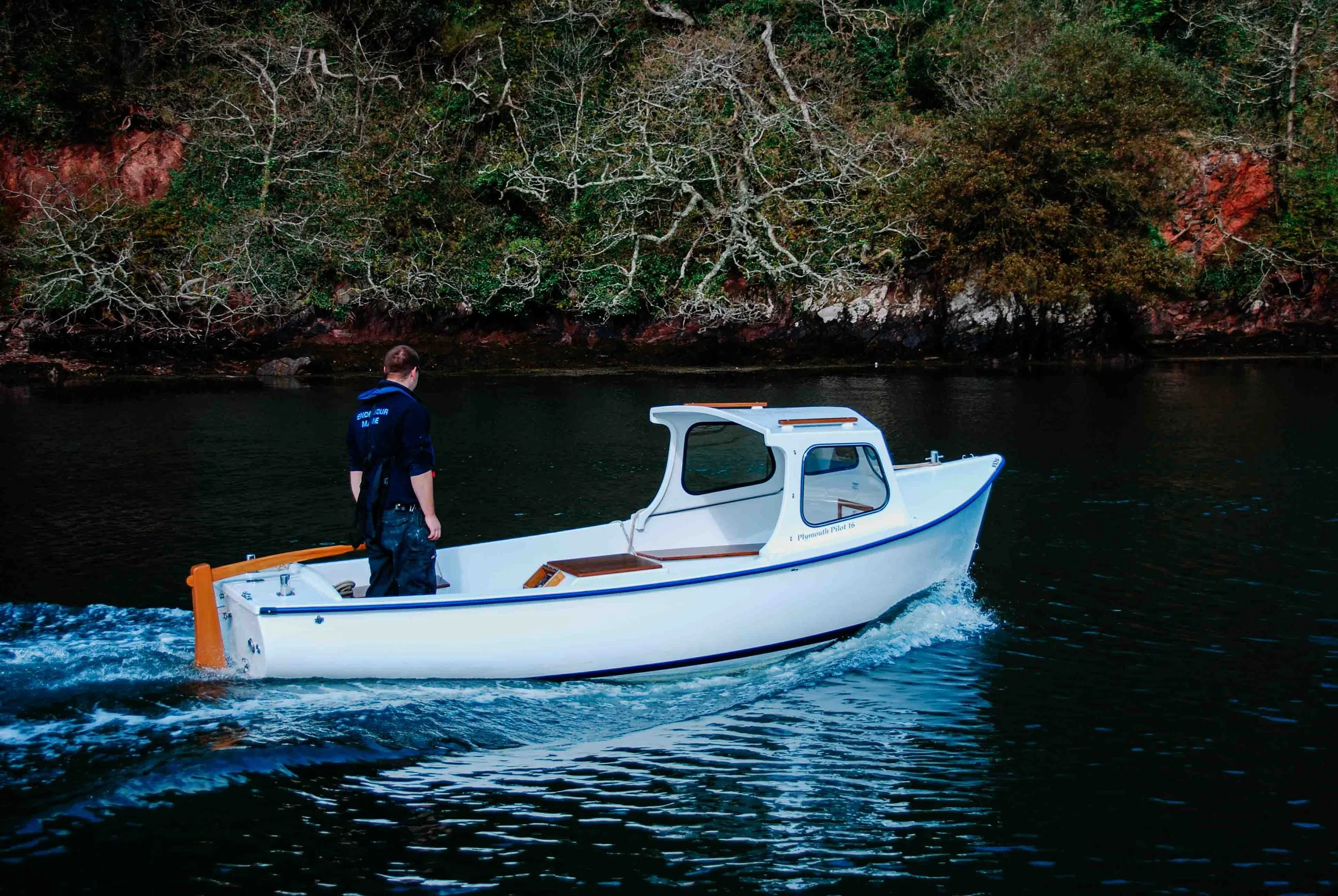 The Plymouth Pilot 16 was the first of the fleet to be manufactured. When the sea calls, it’s the perfect day boat for exploring rivers and along the coast. Despite being the smallest in our fleet, it is stable and easy to manoeuvre, qualities praised by our customers. It has a small 2-cylinder inboard diesel that boasts great economic performance.