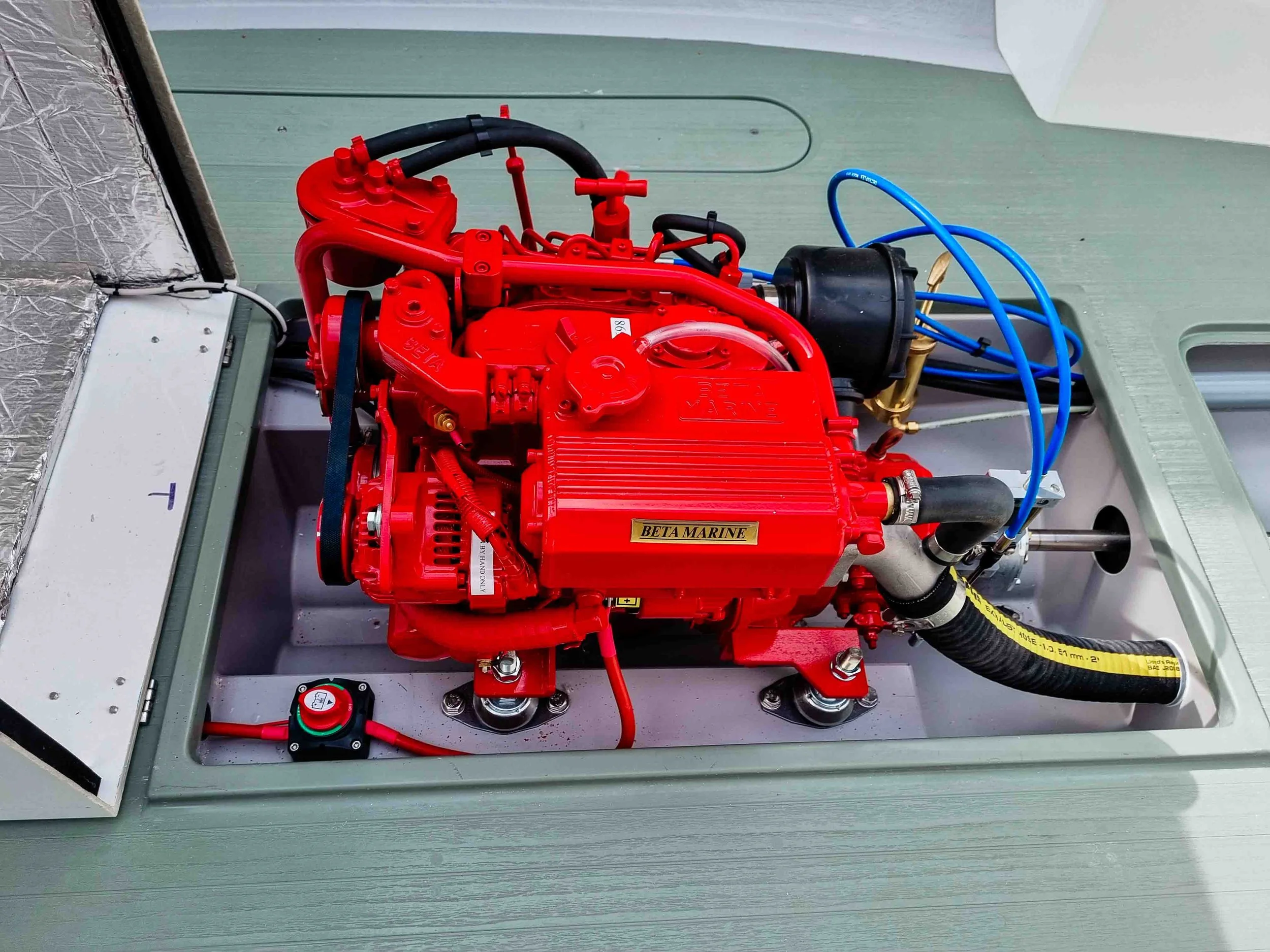 GRP engine box lined with soundproofing insulation, and fitted with stainless steel hinges and lifting handle.