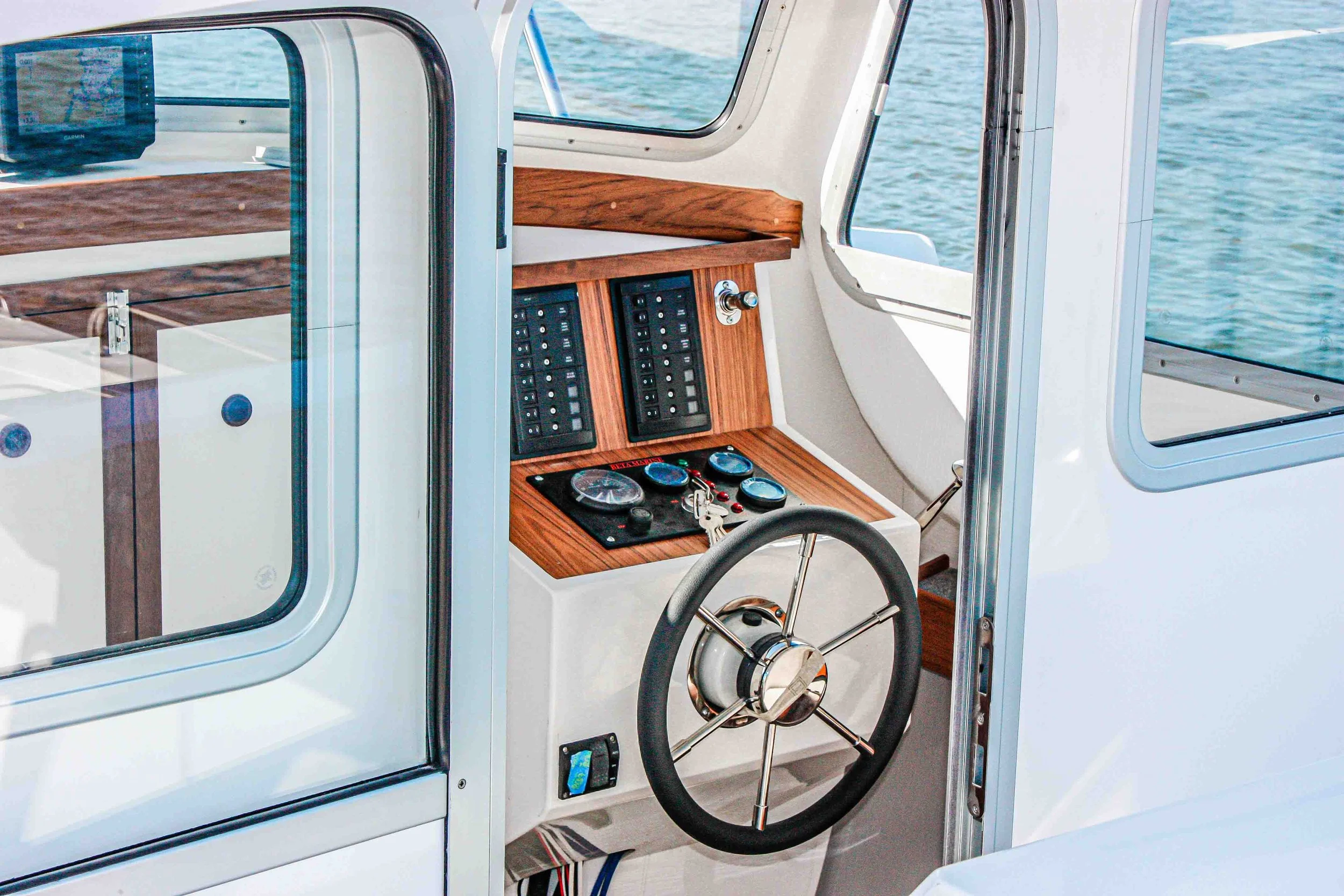 The Pilot 24’ is built with the same level of finish expected in our smaller boats. It can be supplied either open or with up to three wheelhouse options – the Short Angling Wheelhouse, the Day Angler or the bigger Weekender Wheelhouse that can be open or enclosed with an aft bulkhead. This boat can also be fitted with a stainless steel inboard mounted rudder to reduce normal maintenance levels further.
